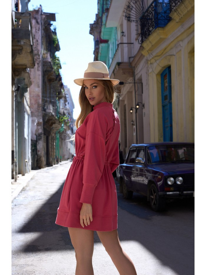 M733 Šaty na zip s ozdobným šněrováním - korálová barva EU S/M