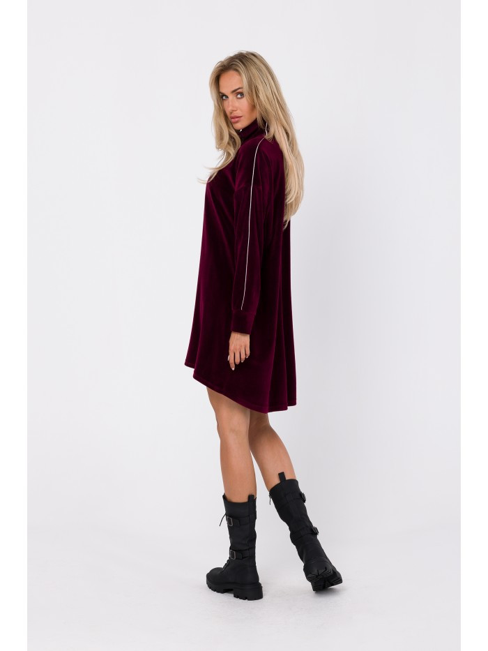 M764 Asymetrické šaty s límcem na zip - bordó EU S/M