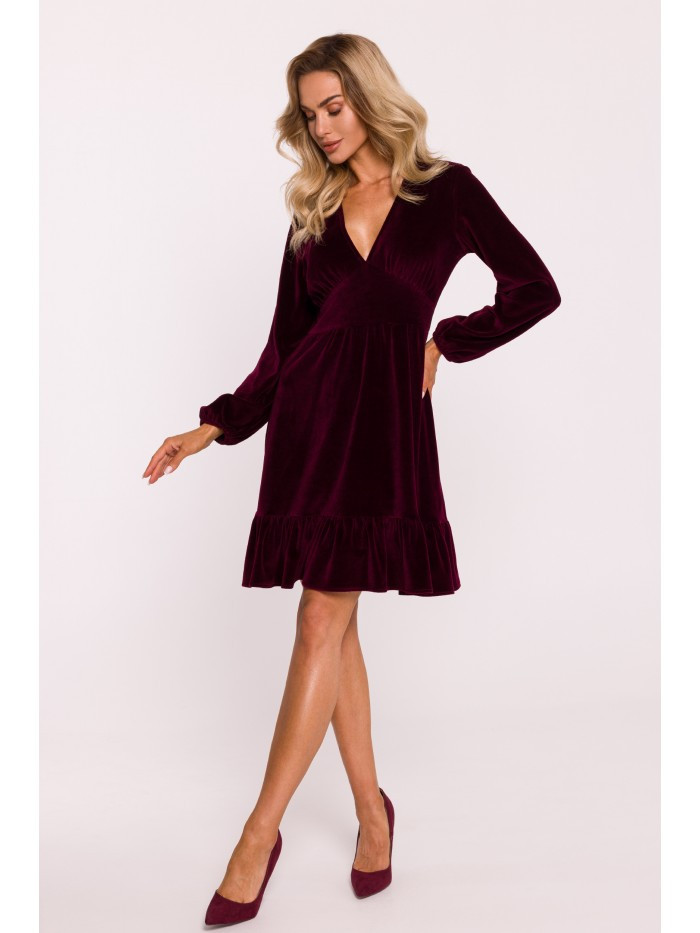M826 Sametové šaty s výstřihem do V - bordó EU XXL
