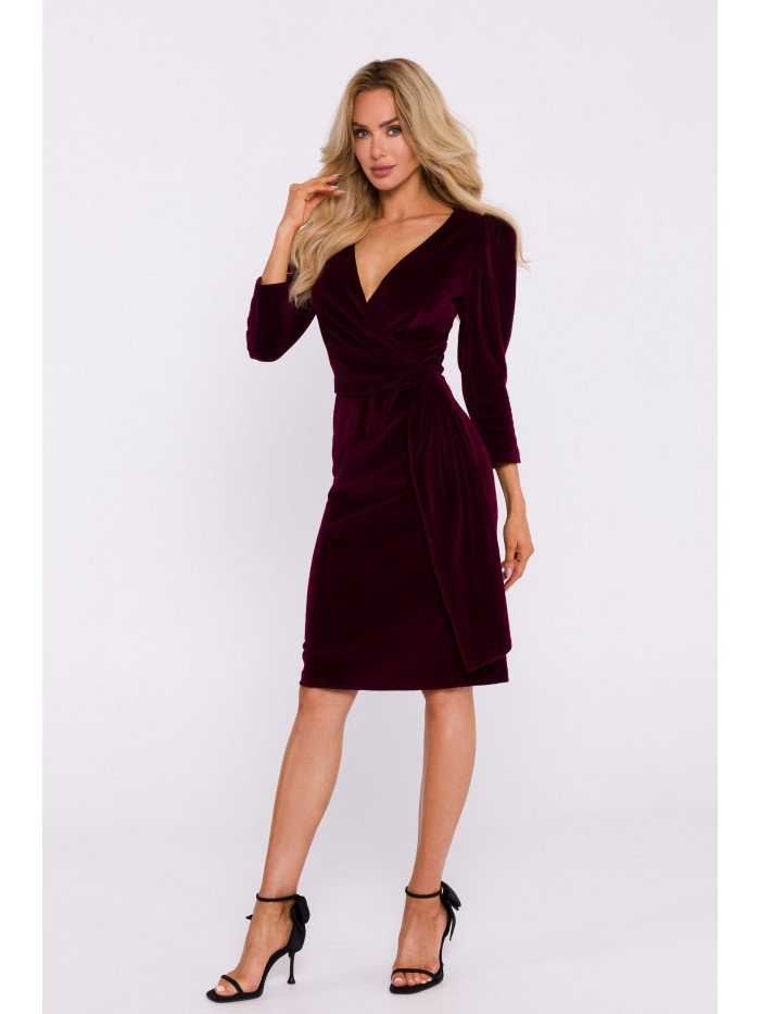 Domů Oblečení a móda Dámské oblečení Dámské šaty M829 Sametové šaty s hlubokým výstřihem do V - bordó EU XL