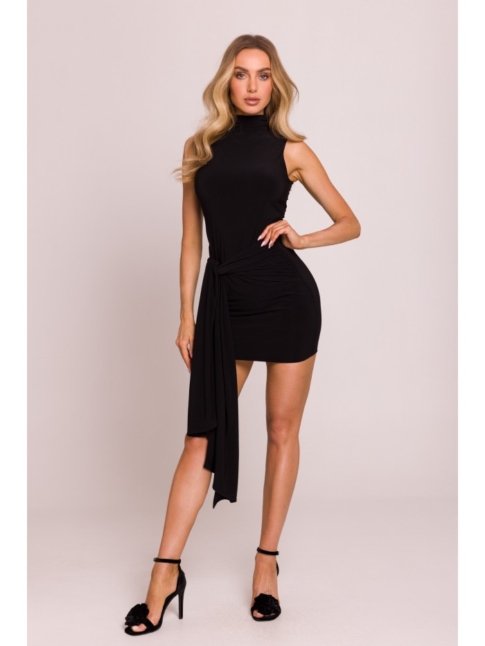 M841 Mini šaty s vázáním vpředu - černé EU M