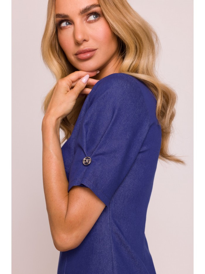 Domů Oblečení a móda Dámské oblečení Dámské šaty M842 Džínové šaty se záhyby - modré EU L