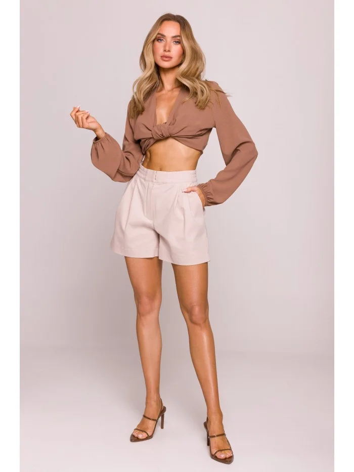 76% bavlna 21% polyester 3% elastan MATERIÁL Materiál: bavlněná tkanina, matná úprava PODROBNOSTI O PRODUKTU Pas: vysoký střih Pásek: elastický pásek, plisovaný přední díl Zapínání: skrytý zip se dvěma knoflíky Kapsy: boční kapsy Model: M860 Navrženo a vyrobeno v Polsku Modelka na fotografii měří 171 cm a má na sobě velikost S STŘIH A VÝSTŘIH Střih: uvolněný a pohodlný Tvar: mírně rozšířené nohavice Délka: krátké nohaviceVELIKOSTSMLXLA35 cm36,5cm38cm39,5cmB50cm52,5cm55cm57,5cmC29,5cm30cm30,5cm31cmD39cm39,5cm40cm40,5cm