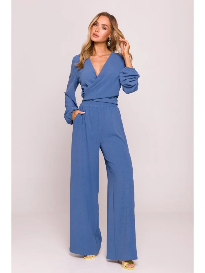 95% polyester 5% elastan MATERIÁL Materiál: lehká strukturovaná tkanina (krep), matný povrch PODROBNOSTI O PRODUKTU Pas: vysoký, elastický pás Zapínání: nazouvací (bez zipu) Kapsy: žádné Model: M862 Navrženo a vyrobeno v Polsku Modelka na fotografii měří 171 cm a má na sobě velikost S STŘIH A VÝSTŘIH Střih: volný Tvar: široké kalhoty Délka: po celé délceVELIKOSTSMLXLXXLA31cm33,5cm36cm38,5cm41cmB52cm54,5cm57cm59,5cm62cmC32cm32,5cm33cm33,5cm34cmD111cm111,5cm112cm112,5cm113cm