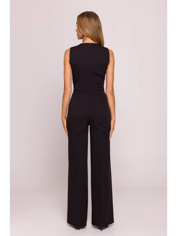Domů Oblečení a móda Dámské oblečení Dámské halenky a košile M866 Kombinéza s krajkovými panely - černá EU S