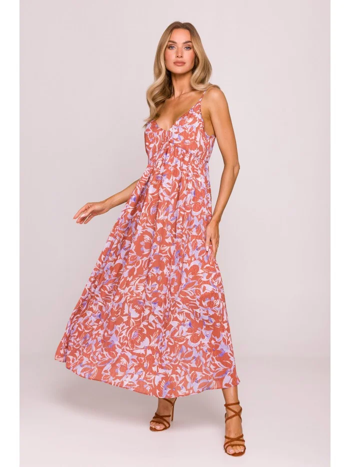 Hlavní tkanina: 100% polyester Podšívka: 95% polyester 5% elastan MATERIÁL Materiál: lehká, vzdušná žakárová tkanina s tištěným vzorem, matný povrch PODROBNOSTI O PRODUKTU Výstřih: výstřih do V Ramínka: tenká, nastavitelná Zapínání: žádné - slipové Kapsy: žádné Podšívka: plně podšitá Vzor: pestrobarevný Model: M868 Navrženo a vyrobeno v Polsku Modelka na fotografii měří 171 cm a má na sobě velikost S Střih a střih Střih: volný Tvar: empírový pas, směrem k lemu rozšířený Délka: midiVELIKOSTS/ML/XL2XL/3XLA45 cm49cm53cmB46cm50cm54cmC121cm124cm127cm