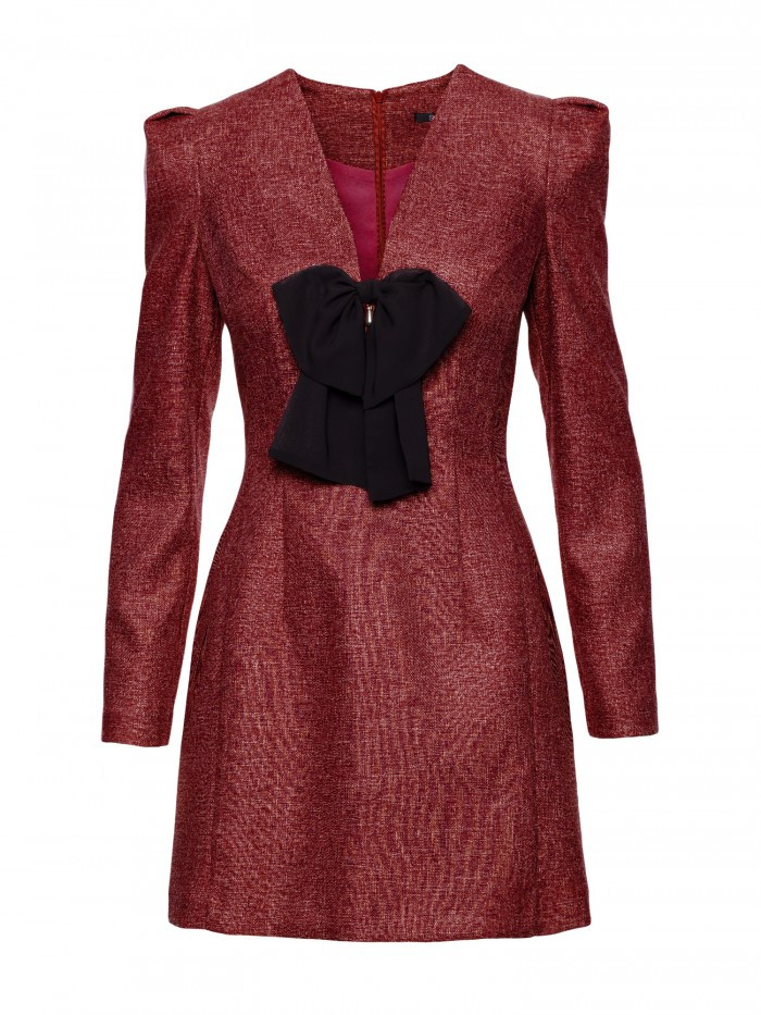 HLAVNÍ LÁTKA: 70% polyester 27% rayon 3% spandex PODŠÍVKA: 95% polyester 5% elastan MATERIÁL: Tkanina Tweed PODROBNOSTI O PRODUKTU Výstřih: Hluboký výstřih do V Rukávy: Dlouhé Zapínání: Skrytý zip na zádech Kapsy: Žádné Podšívka: Ano Vzor: Mélange Detaily: Ozdobný odnímatelný detail - šifonová mašle s přívěskem ve stylu šperku Model: M869 Navrženo a vyrobeno v Polsku Modelka na fotografii měří 171 cm a má na sobě velikost S STŘIH A VÝSTŘIH Střih: Lehce přizpůsobený Tvar: Zvýrazňující pas, mírně rozšířená ramena s puff detaily Délka: MiniVELIKOSTSMLXLXXLA35 cm36cm37cm38cm39cmB44cm46,5cm49cm51,5cm54cmC35cm37,5cm40cm42,5cm45cmD48cm50,5cm53cm55,5cm58cmE65cm65,5cm66cm66,5cm67cmF86cm87,5cm89cm90,5cm92cm