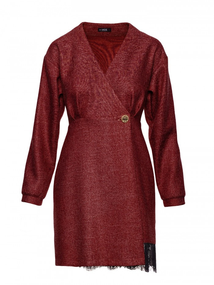 Domů Oblečení a móda Dámské oblečení Dámské šaty M871 Zavinovací šaty z tvídu - bordó EU S