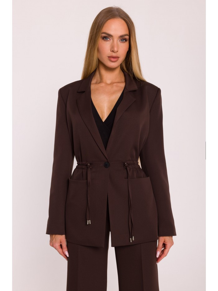 Domů Oblečení a móda Dámské oblečení Dámská saka M873 Blejzr se stahováním v pase - hnědý EU L