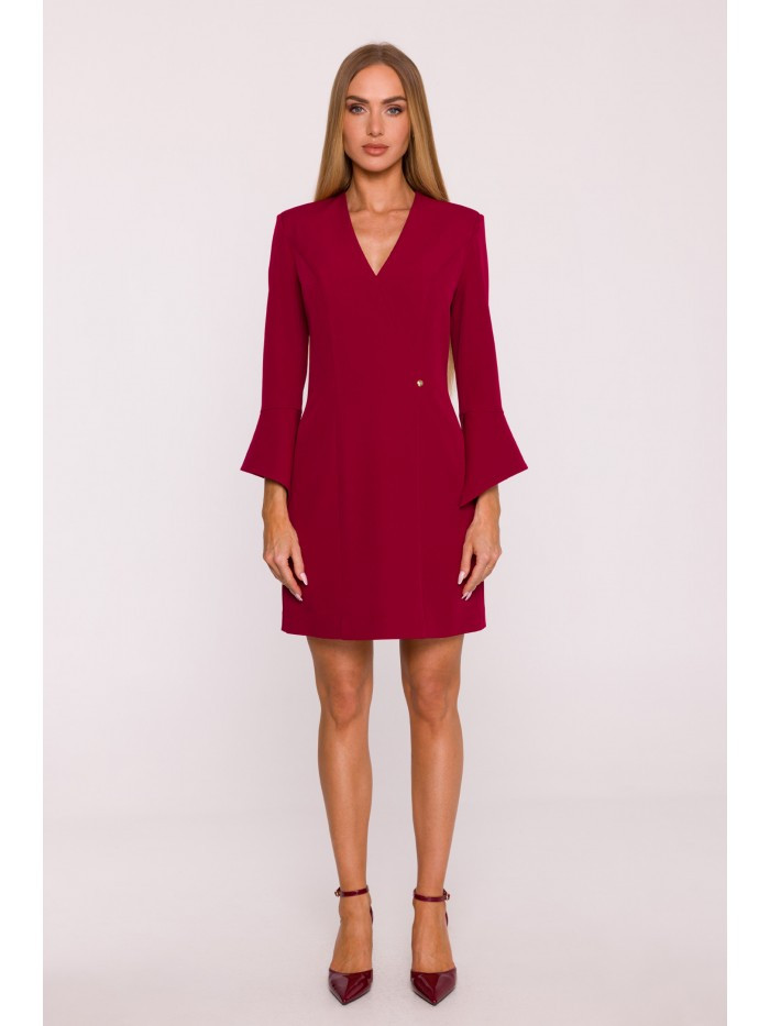 Domů Oblečení a móda Dámské oblečení Dámské šaty M876 Šaty s širokými manžetami - bordó EU XL