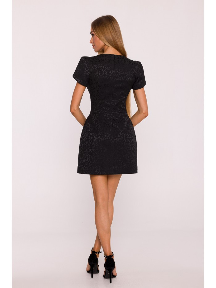 HLAVNÍ LÁTKA: 50% bavlna 47% polyester 3% elastan PODŠÍVKA: 100% polyester MATERIÁL Látka: žakárová tkanina s botanickým vzorem. PODROBNOSTI O PRODUKTU Výstřih: hluboký výstřih do V Rukávy: krátké s elegantními záhyby na ramenou Zapínání: skrytý zip na zádech Kapsy: žádné Podšívka: žádná Vzor: žakár Model: M882 Navrženo a vyrobeno v Polsku Modelka na fotografii měří 171 cm a má na sobě velikost S STŘIH A VÝSTŘIH Střih: tělový Tvar: přesýpací hodiny s výrazně ohraničeným pasem Délka: miniVELIKOSTSMLXLXXLA32 cm33cm34cm35cm36cmB44cm46,5cm49cm51,5cm54cmC35cm37,5cm40cm42,5cm45cmD51cm52,5cm56cm58,5cm61cmE82cm84,5cm87cm89,5cm92cmF19cm20cm21cm22cm23cm