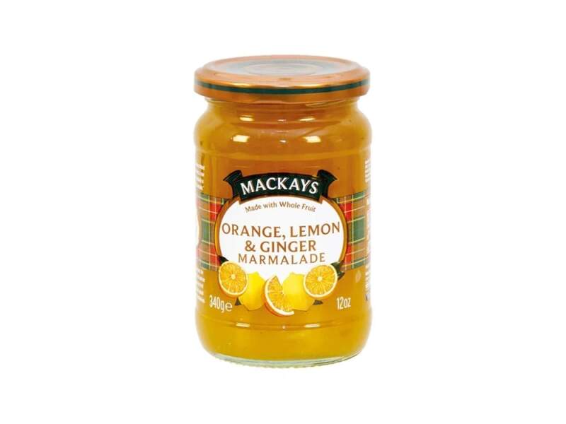 Anglická marmeláda pomeranč, citrón, zázvor Džemy a zavařeniny Mackays jsou vyhledávány pro svou kvalitu.Zahrnují množství tradičních ovocných variací, ale také spousty chutných a žádaných netradičních produktů. Složení: Cukr, Seville pomeranče (15%), citrony (8%), zázvor (2%), želírující látka: ovocný pektin, regulátor kyselosti: kyselina citronová. Obsah ovoce: 25 g na 100 g.Obsah cukru: 65 g na 100 g.- VHODNÉ PRO VEGETARIÁNY- VHODNÉ PRO VEGANY- BEZLEPKOVÉ Výživové údaje na 100 g :Energetická hodnota 1555kj / 272kcalTuk 0,1 g (z toho nasycené mastné kyseliny) 0 gSacharidy 67,5 g (z toho cukry) 67,1 gBílkoviny 0,3 gSůl 0 g