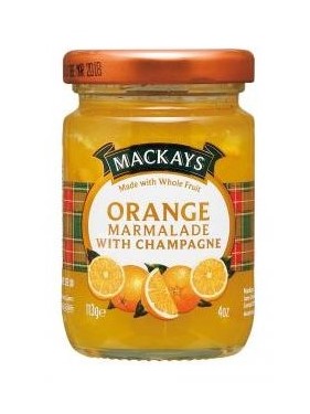 Mackays - Pomerančový džem se šampaňským, 113g DŽEM Z POMERANČE SE ŠAMPAŇSKÝMDžemy a zavařeniny Mackays jsou vyhledávány pro svou kvalitu.Zahrnují množství tradičních ovocných variací, ale také spousty chutných a žádaných netradičních produktů. Složení: Cukr, sladké španělské pomeranče, citrónová šťáva (z koncentrátu), želatinační činidlo: ovocný pektin, šampaňské Marc de Champagne (0.3%), regulátor kyselosti: kyselina citrónová.Obsah ovoce: 25g na 100gObsah cukru: 65g na 100g. Výživové údaje na 100g:Energetická hodnota 1146 kJ/270kcalTuk 0g (z toho nasycené mastné kyseliny 0g)Sacharidy 66.8g (z toho cukry 66.7g)Obsahuje zanedbatelné množství bílkovin a soli