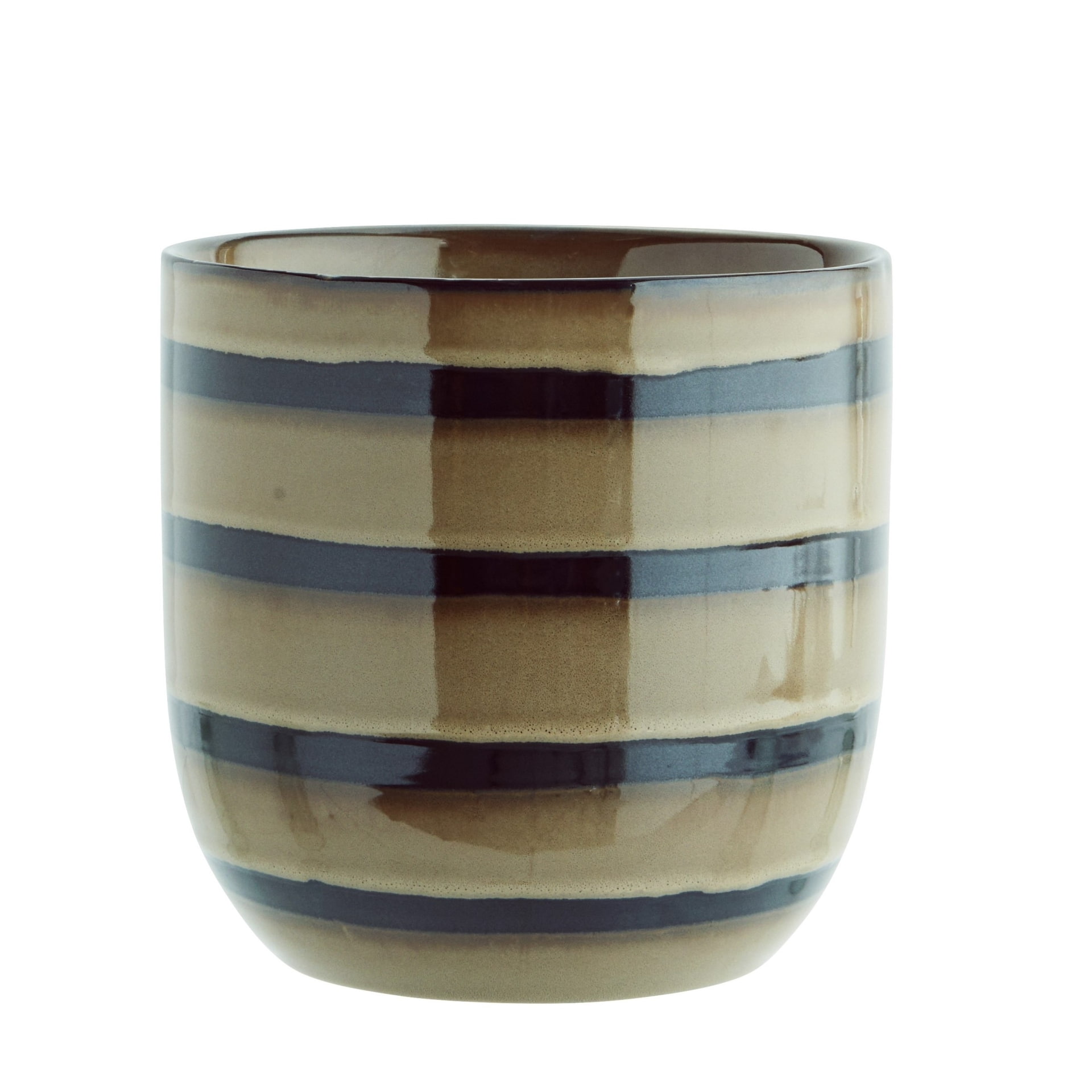 MADAM STOLTZ Keramický obal na květiny Dijon/Black 18 cm, hnědá barva, keramika. Květin a krásných květináčů není doma nikdy dost, a proto můžete svoji sbírku doplnit o tento originální keramický obal od dánské značky Madam Stoltz. Má krásnou glazuru tvořenou efektními nepravidelnými pruhy v odstínu hnědé a černé barvy.