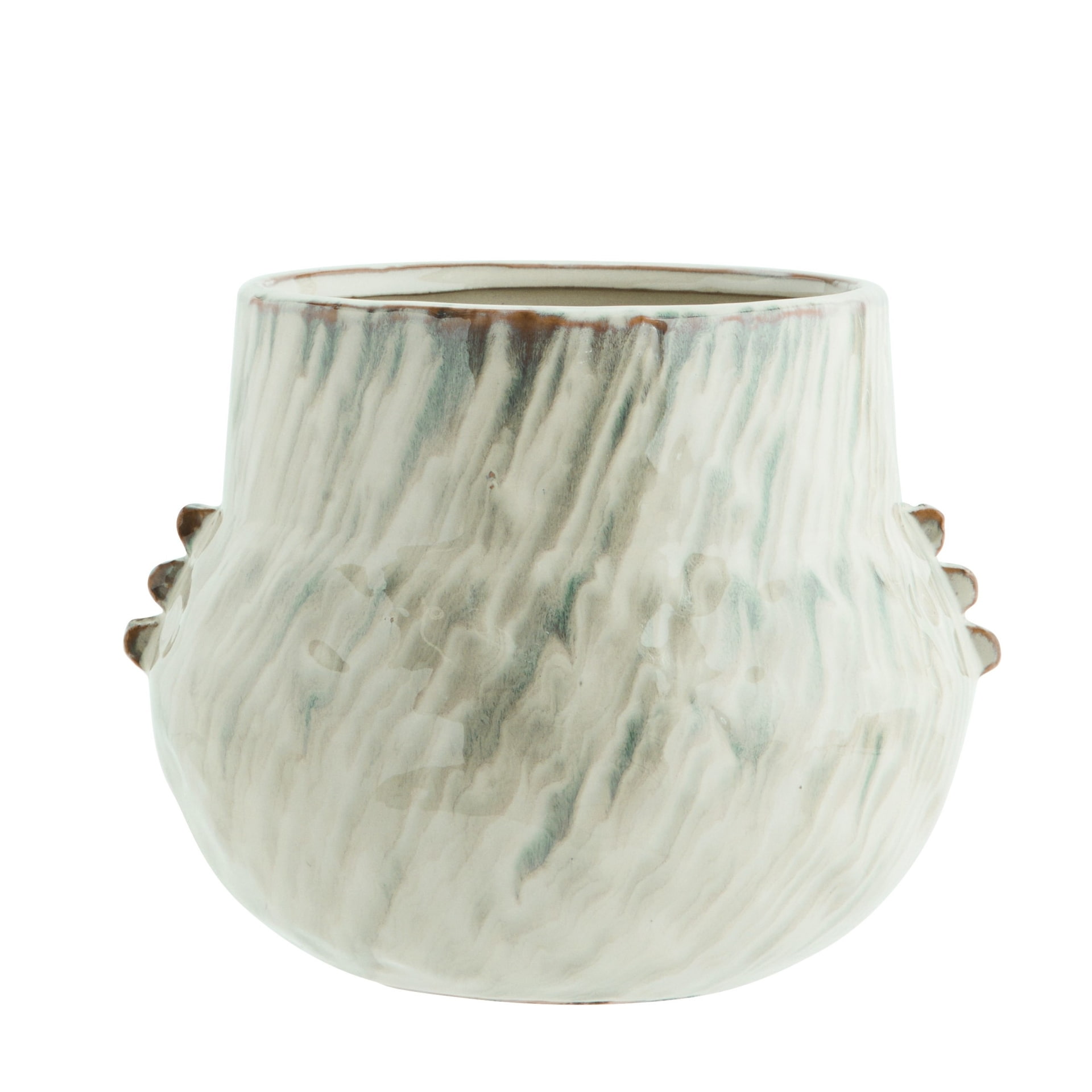 MADAM STOLTZ Keramický obal na květiny Off White 21 cm, krémová barva, keramika. Květin a krásných květináčů není doma nikdy dost, a proto můžete svoji sbírku doplnit o tento originální keramický obal od dánské značky Madam Stoltz. Je v krémově bílé barvě jíž prosvítá zelené žíhání, po stranách ho zdobí malé výstupky.