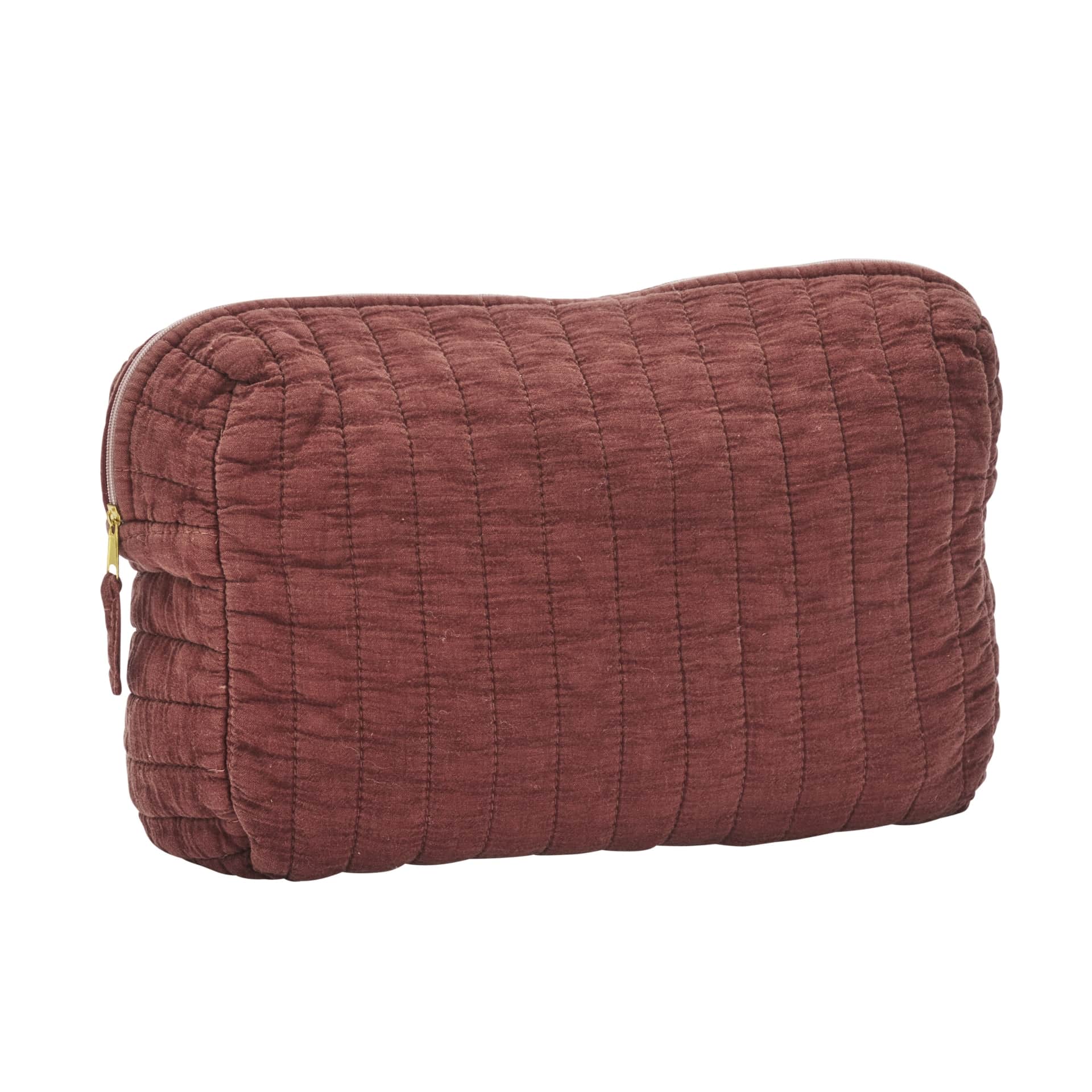 MADAM STOLTZ Prošívaná kosmetická taštička Mahogany, červená barva, hnědá barva, textil. Tato kosmetická taška z příjemné bavlny bude vašim praktickým společníkem na cesty. Taštička od dánské značky Madam Stoltz je ideální na víkendové cestování i jako dekorace do koupelny na poličku.
