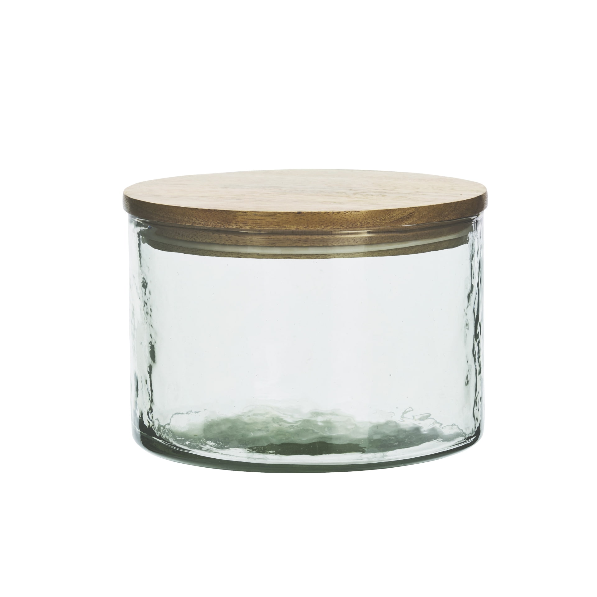 Díky kvalitní kombinaci materiálů je dóza nejen praktickým, ale také designovým doplňkem. průměr 16 cm / výška 11 cm Částečně recyklované sklo, mangové dřevo.