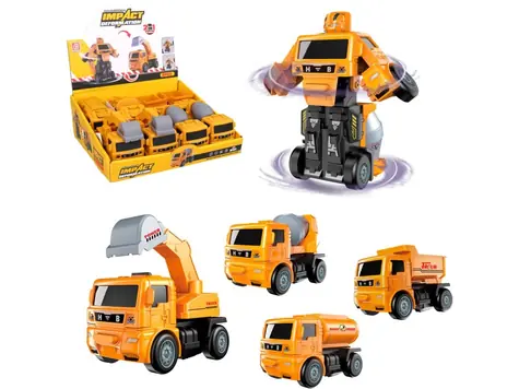 MaDe 14063 - Robot - auta stavební, měnící se, na setrvačník, 11,5 x 6,5 x 8,5 cm