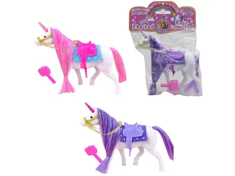 MaDe 15686 Kůň jednorožec se štětcem, uzdou, sedlem a sedlovou podložkou