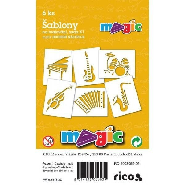 <p>Sada 6ks papírové šablony na malování. Materiál bílý karton 220g. Doporučujeme pro malování s magickými voskovkami (technika frotáž), vhodné i pro tupování s temperami, pro malování s foukacími fixami nebo techniku malování plastelínou. Nevhodné pro děti do 3.let, obsahuje malé dílky. Rozměry 11x14cm.</p>