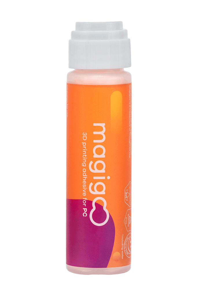 MAGIGOO je snadno použitelné tekuté "lepidlo" navržené tak, aby vyřešilo Váš problém s přilnavostí první vrstvy, což je základním problémem ve 3D tisku technologií FDM. Při špatné přilnavosti se tisk oddělí od samotné tiskové platformy. Dobrá adheze první vrstvy je důležitá, jelikož tato vrstva tvoří základ pro celý zbytek tisku. MAGIGOO byl speciálně navržen pro univerzální použití. Stejně dobře tedy funguje pro PLA, tak i ABS a další filamenty. MAGIGOO se snadno čistí vodou - což je nejběžnější a nejdostupnější rozpouštědlo. Po každém tisku jej lze vyčistit pomocí navlhčeného hadříku, čímž zamezíte nadbytečnému nahromadění produktu MAGIGOO. Adhezivní vlastnosti přípravku MAGIGOO jsou navrženy tak, aby přidržely model během tisku a uvolnily jej po vychladnutí. Během procesu chlazení uslyšíte výrazný praskavý zvuk jak u ABS, tak u PLA. To dochazí k odlepení výtisku od podložky a po úplném vychladnutí lze 3D výtisky snadno odstranit bez použití nástrojů a nadměrné síly. MAGIGOO pomáhá v boji proti deformacím - což je také často opakující se problém U ABS a ASA materiálu. Tuto výhodu jistě oceníte, a to zejména při vícehodinovém tisku. V takovém případě opravdu velmi záleží na tom, aby nedošlo k deformacím a problémům s přilnavostí a Váš dlouhý tisk byl v pořádku dokončen. Více o tom, jak a proč využívat adhezivní přípravky najdete zde. Vydrží více než 100 použití. Je rozpustný ve vodě a proto se snadno čistí.Návod k použití: 1. Odstranění těsnící foliePřed prvním použitím je nutné odstranit kolečko z těsnění, které brání vysychání a rozlití přípravku během přepravy. Odšroubujte kryt aplikátoru a odstraňte těsnící folii. 2. Aplikace výrobkuAplikujte na tiskovou podložku souvislý tenký film, který zajistí přilnavost výtisku k podložce. Jakmile je výrobek aplikován, doporučuje se láhev znovu uzavřít tak, aby vnitřní kapalina nevyschla, což by mohlo způsobit zanesení aplikátoru. 3. Tisk modeluMagigoo lze použít pro 3D tiskárny s vyhřívanou i nevyhřívanou tiskovou podložkou. 4. Sundání modelu z podložkyPři tisku je spojení mezi materiály velmi silné, jakmile dojde k ochlazení na pokojovou teplotu, lze tisk sundat bez použití násilí.5. Očištění podložkyPři nerovnoměrném rozprostření zbytku přípravku po tisku je vhodné podložku v místě použití otřít vlhkým hadříkem. Pro další tisk pak můžete nanést novou vrstvu a nechat ji zaschnout.