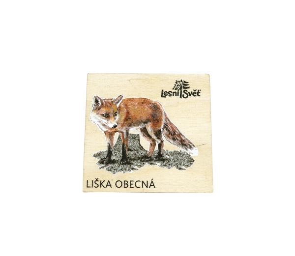 Magnet malý vyrábí u nás v dílně české ruce z kvalitního certifikovaného dřeva. Balení obsahuje 1 ks magnet z překližky o rozměru 5 × 5 cm. Nemá ochranný obal. Autorem kreseb jsou čeští ilustrátoři, obrázky jsou chráněny autorskými právy. Zábavnou a hravou formou seznamuje děti i dospělé s přírodou. Ozdobte tabuli i lednici kouskem přírody. Lesní svět = značka s ekologickým certifikátem udržitelného hospodářství PEFC. Všechny výrobky jsou vyrobeny s ohledem na životní prostředí.