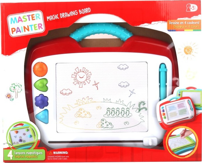 Nech volný průchod své fantazii! Magnetická kreslicí tabulka umožňuje dětem kreslit, razítkovat a snadno mazat, takže si mohou hrát a tvořit stále dokola. Vlastnosti: Obsahuje 4 razítka – pro ještě zábavnější kreslení Snadné mazání – jedním tahem smaž a začni znovu Podporuje kreativitu a jemnou motoriku Skvělá hračka pro malé umělce, kteří rádi tvoří!