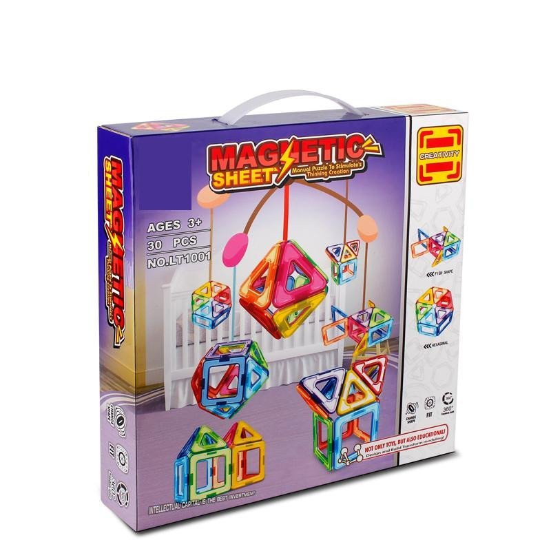 Magnetická stavebnice s 30 dílky, které můžeš poskládat jak chceš. Magnetické dílky u sebe krásně drží.