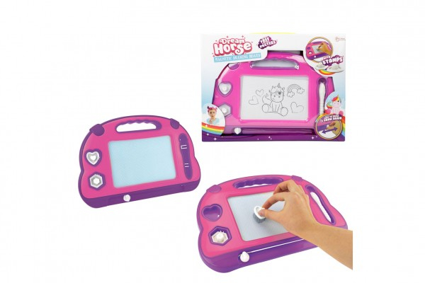 Magnetická mazací tabulka v krásném barevném provedení je kreativní pomůcka pro kreslení. A pokud se dětem obrázek nebude líbit, v mžiku ho smažou pomocí mazací lišty. Součástí balení je tužka na tabulku a dvě razítka. Rozměr krabice: 37 x 29 x 2,5 cm Vhodné od 4 let