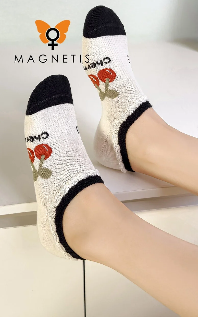 Dámské ponožky - měkká bavlna - jemný třešňový vzor Složení: 92 % bavlna, 8 % elastan