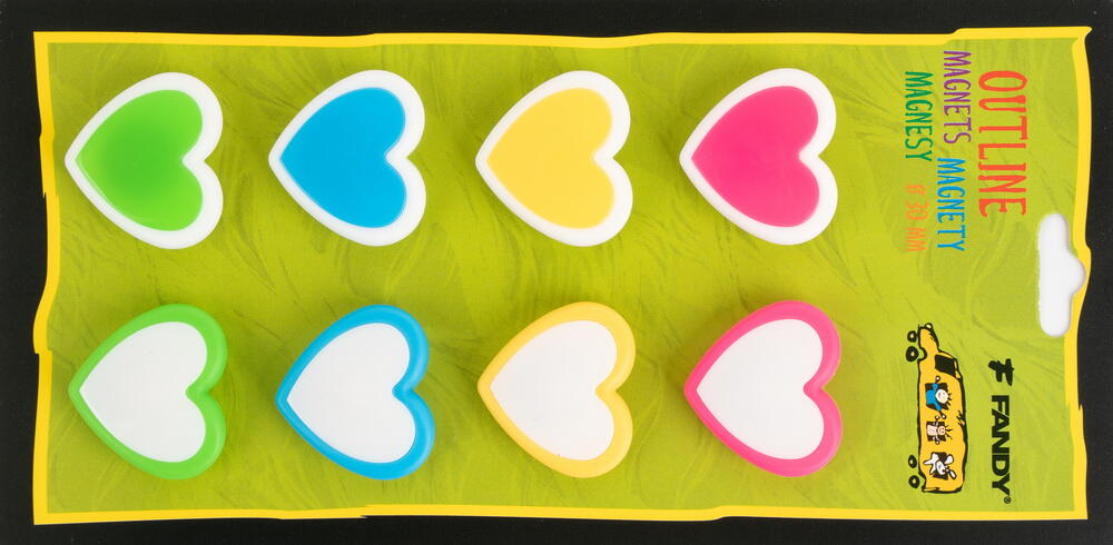 Magnety Outline 8 ks - Srdce Přineste lásku a barvy na vaši magnetickou tabuli! Sada 8 různobarevných magnetů ve tvaru srdce s originálním outline designem je perfektním doplňkem pro každou kancelář, domácnost nebo školní třídu. Tyto roztomilé magnety nejen spolehlivě přichytí vaše důležité poznámky, fotografie a dokumenty, ale zároveň oživí každou tabuli svým veselým a moderním vzhledem. Klíčové vlastnosti: • 8 kusů v balení - dostatek magnetů pro všechny vaše potřeby • Průměr 3 cm - ideální velikost pro praktické využití • Různobarevné provedení - zelená, modrá, žlutá a růžová barva s bílým rámečkem • Tvar srdce - romantický a hravý design • Outline styl - moderní dvoubarevné provedení s kontrastním okrajem Tyto praktické a stylové magnety jsou skvělé pro organizaci dokumentů na magnetické tabuli, lednici nebo jakémkoliv magnetickém povrchu. Díky pestré barevné paletě můžete snadno barevně kódovat různé typy informací nebo jednoduše přidat veselý akcent do vašeho pracovního či domácího prostředí. Ideální dárek pro milovníky designu, organizace nebo jako milé pozornost pro blízkou osobu. Magnety jsou vyrobeny z kvalitních materiálů zajišťujících dlouhou životnost a spolehlivou přilnavost. Zakupte produkt Magnety Outline 8 ks - Srdce z kategorie Kancelář | Prezentace | Příslušenství k tabulím od výrobce Fandy za cenu 49.9 Kč.