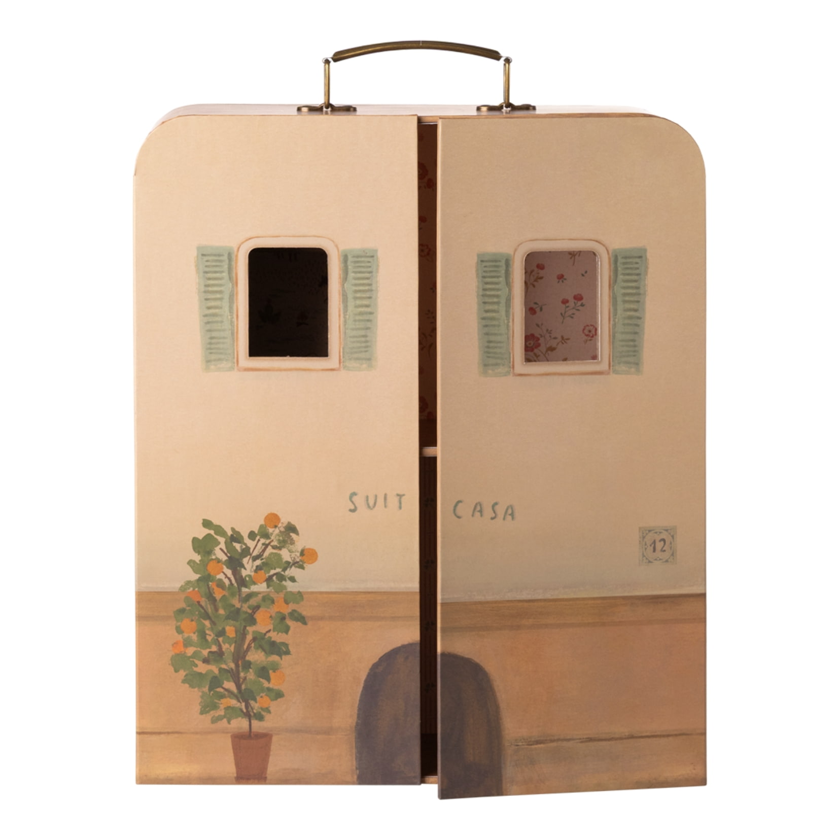 SuitCasa je ideální základ pro vytvoření vlastního myšího příběhu – můžete jej dále doplňovat drobným nábytkem Maileg a zařídit si jej přesně podle svých představ. Děti nadchne možnost domeček jednoduše přenášet, otevírat, skládat a znovu objevovat. Je to nádherný dárek pro malé i velké milovníky mailegovského světa, který podporuje kreativitu a představivost. výška 34 cm / šířka 28 cm / hloubka 15 cm Vyrobeno z pevného kartonu, kovová úchytka na přenesení.