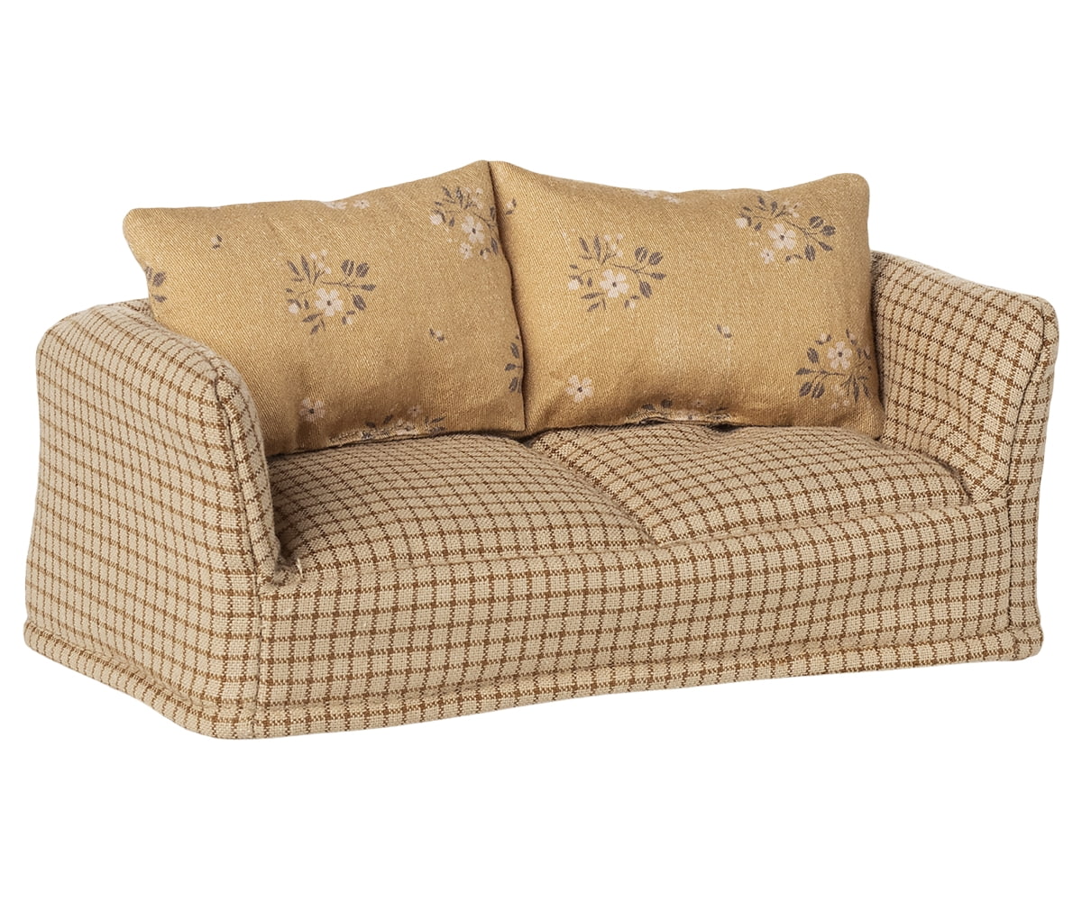 Maileg Sedačka pro zvířátka Maileg Mable, žlutá barva, textil. Každá rodina potřebuje pohodlnou pohovku – a ta myší, Maileg, není výjimkou! Tahle útulná sedačka Mable je přesně to místo, kde se myší maminka, tatínek i sourozenci namačkají k sobě a užijí si společný čas. Díky svému stylu se perfektně hodí do myšího domečku i hradu.