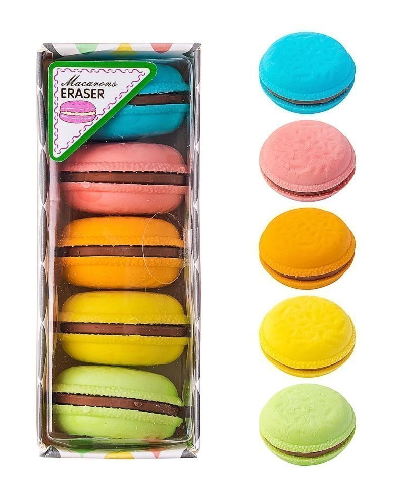 Sada pěti gum ve tvaru makronek přináší do školních dnů zábavu a originalitu. Každá guma má měkký, pružný povrch, který je příjemný na dotek a ideální pro mačkání, což pomáhá snižovat stres. Díky kompaktní velikosti jsou perfektní pro každodenní použití d
