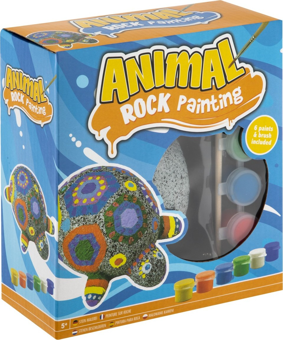 Malování na kámen Želva 12 cm – sada obsahuje kamenou želvu, 6 barev a štětec.