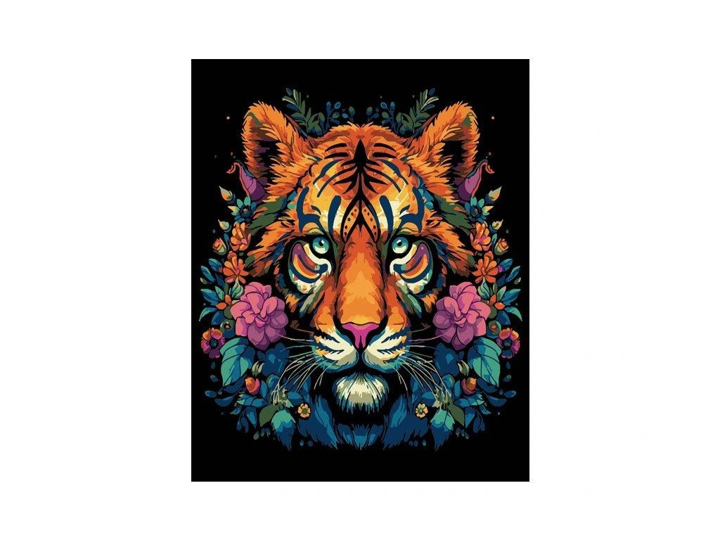 Malování podle čísel na černém plátně (40 x 50 cm) - tygr v květinách Vneste do svého domova nespoutanou sílu a eleganci s tímto jedinečným, ručně malovaným obrazem. Na černém plátně o rozměrech 40 x 50 cm se rozzáří majestátní portrét tygra, symbolu moci, odvahy a krásy. Živá oranžová a sytá černá tygří srsti tvoří ohromující kontrast s tmavým pozadím, což nechává vyniknout jeho pronikavému pohledu a detailním pruhům. Obraz má silný vizuální dopad a stane se nepřehlédnutelným dominantním prvkem každého moderního interiéru. Je ideální pro milovníky divoké přírody a umění, které vyzařuje sílu a energii. Perfektní doplněk do obývacího pokoje, pracovny nebo kanceláře, kde vnese nádech dobrodružství.