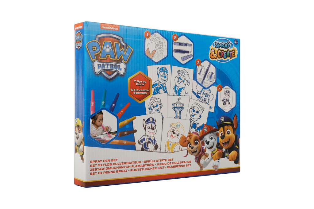 Malování s foukacími fixami Tlapková patrola- obsahuje 7 ks foukacích fixů a 6 šablon s obrázky.