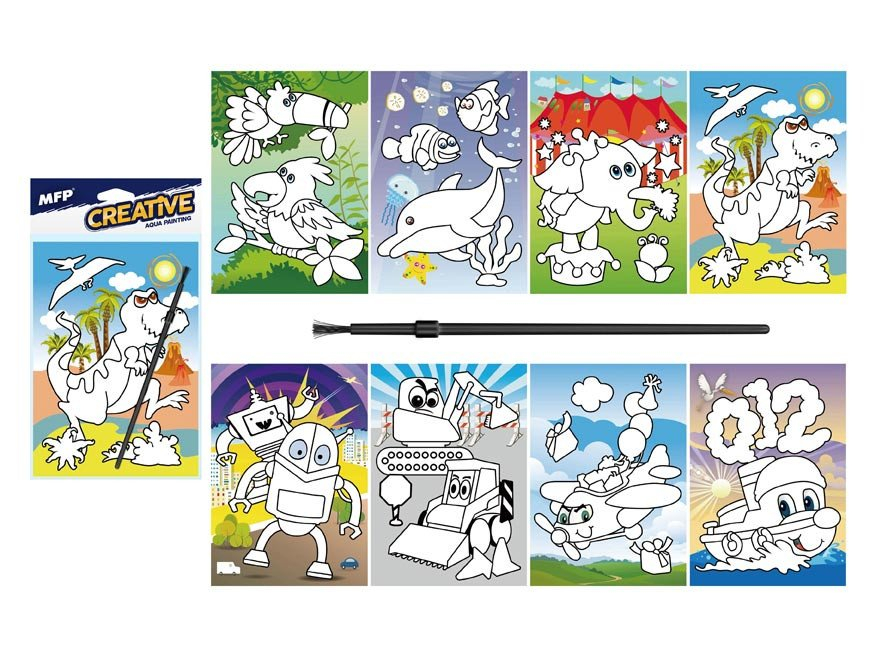 Malování vodou - kartonový list + štětec 150x210mm mix 2