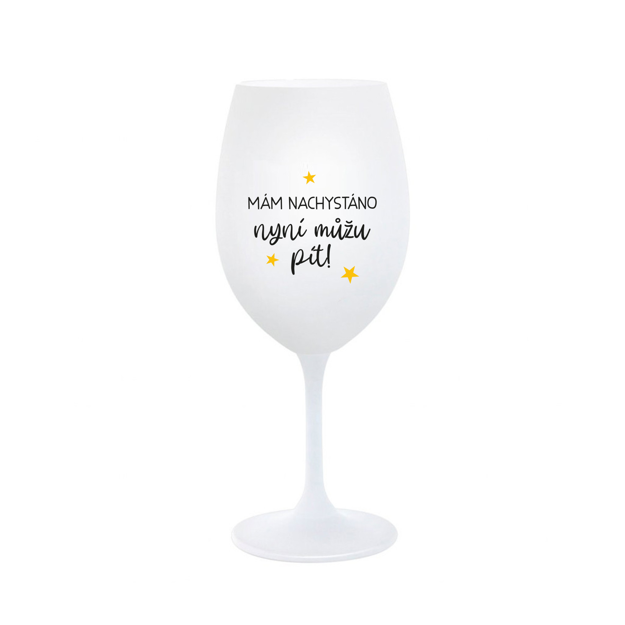 Vinná bílá sklenice s originálním motivem MÁM NACHYSTÁNO, NYNÍ MŮŽU PÍT je krásným a osobitým dárkem, které ale využijete i Vy sami třeba ve chvílích, kdy si budete chtít zpříjemnit náročný den. Tyto originální vinné sklenice jsou totiž nejen pro výjimečné události, ale i pro běžné večery, které si chcete zpříjemnit sklenkou dobrého vína. Jistě proto potěší každého milovníka vína, i toho, kdo si umí svůj život vychutnat plnými doušky. Materiál sklo. Vyrobené s láskou v ČR