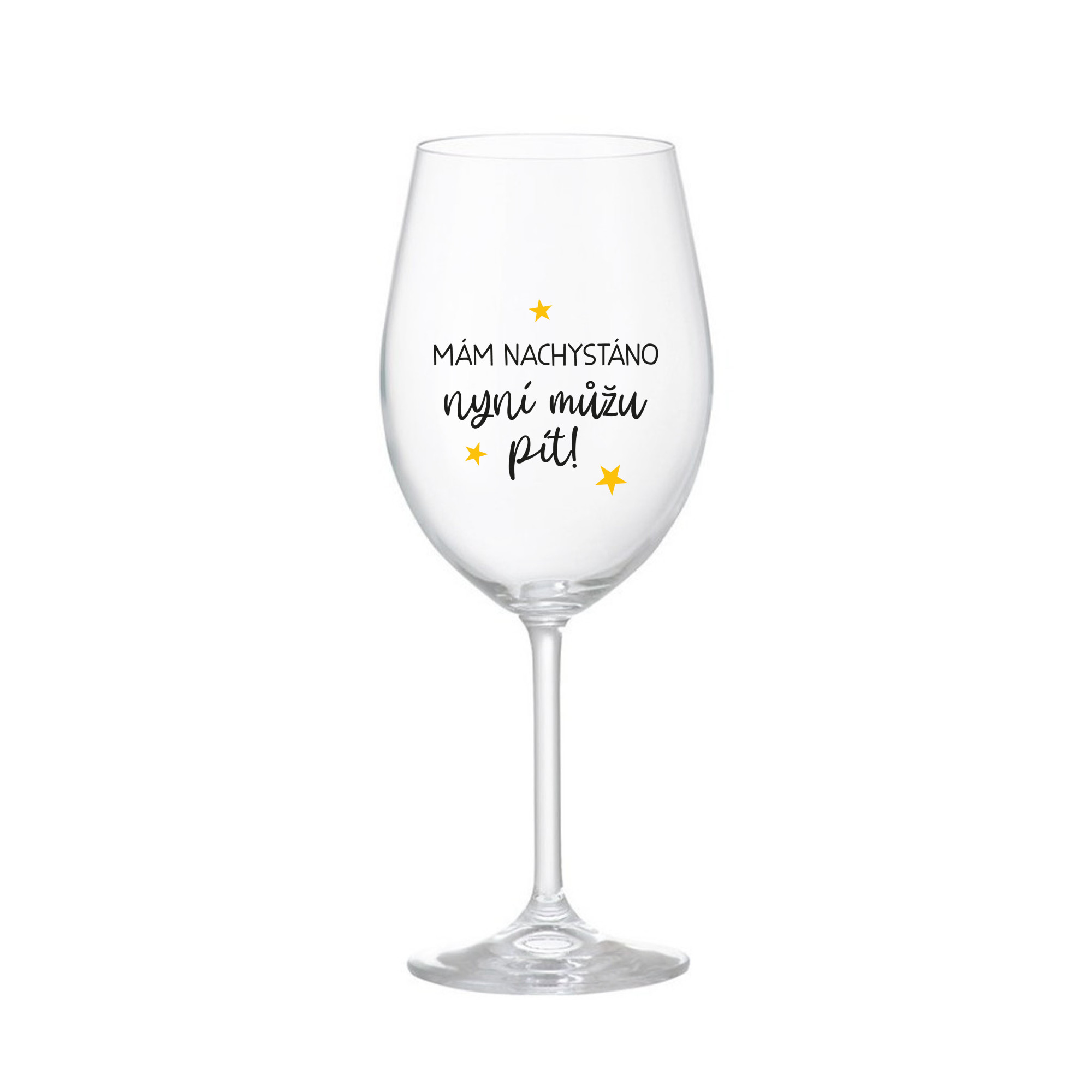 Vinná čirá sklenice s originálním motivem MÁM NACHYSTÁNO, NYNÍ MŮŽU PÍT je krásným a osobitým dárkem, které ale využijete i Vy sami třeba ve chvílích, kdy si budete chtít zpříjemnit náročný den. Tyto originální vinné sklenice jsou totiž nejen pro výjimečné události, ale i pro běžné večery, které si chcete zpříjemnit sklenkou dobrého vína. Jistě proto potěší každého milovníka vína, i toho, kdo si umí svůj život vychutnat plnými doušky. Materiál sklo. Vyrobené s láskou v ČR