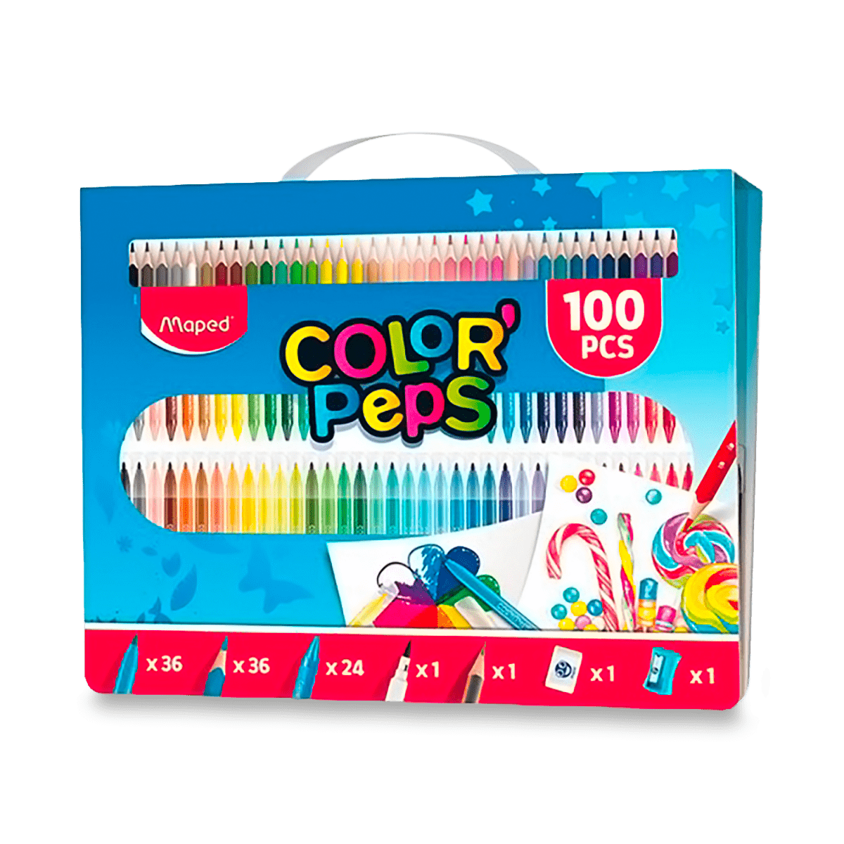 Výtvarná sada Maped. Souprava 100 kusů pastelek, fixů, voskovek a příslušenství pro začínající umělce v praktickém balení v boxu. Sada obsahuje: 36 kusů fixů 36 kusů pastelek 24 kusů voskovek černý fix se štětečkovým hrotem grafitovou tužku ořezávátko pryž Zakupte produkt Výtvarná sada Maped Color’Peps Box - 100 kusů z kategorie Výtvarné potřeby | Pastelky | Klasické pastelky | Pastelky v sadě | Trojhranné od výrobce Maped za cenu 589 Kč.