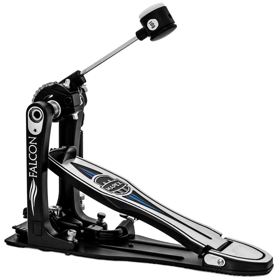 Pedál k basovému bubnu Zboží bylo vybaleno z obalu, jinak je zcela nové, nepoužité. FALCON PF1000 Pedály z řady Falcon nyní nabízí nový design i nové možnosti nastavení. Spodní deska protiskluzovou gumou je zmenšena na minimum, pata je ložisková, úchyt k ráfku kopáku má oboustranné plovoucí čelisti, aby se pata nikdy nezvedala, beater nabízí filcové i plastové zakončení. Zcela nezávisle lze nastavit výšku desky pedálu a úhel beateru. V základu Falcon využívá dvojřetězový převod, možné je ale dokoupit hardwa