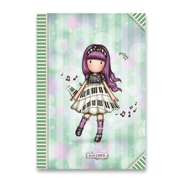 Praktický sešit velikosti A4, je vhodný pro školáky i dospělé. Atraktivní design oblíbených panenek Santoro Gorjuss je líbivým prvkem úvodní strany. Část obrázku je zvýrazněn glitry a plasticky vystupuje z plochy. V sešitu je celkem 40 linkovaných listů, papír má gramáž 80 g, vazba je šitá. Součástí je také natištěný rozvrh hodin. Cena je za 1 ks.