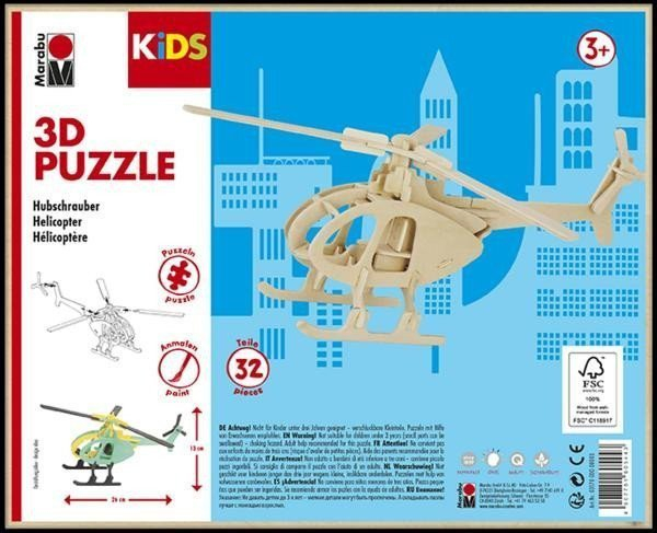 Puzzle pro kreativní design a do sbírky Jednoduchý design s technologií plug-in Ideální pro malování pomocí uměleckých barev Marabu KiDS Dílky ze dřeva certifikovaného FSC Puzzle od 3 let 32 dílků