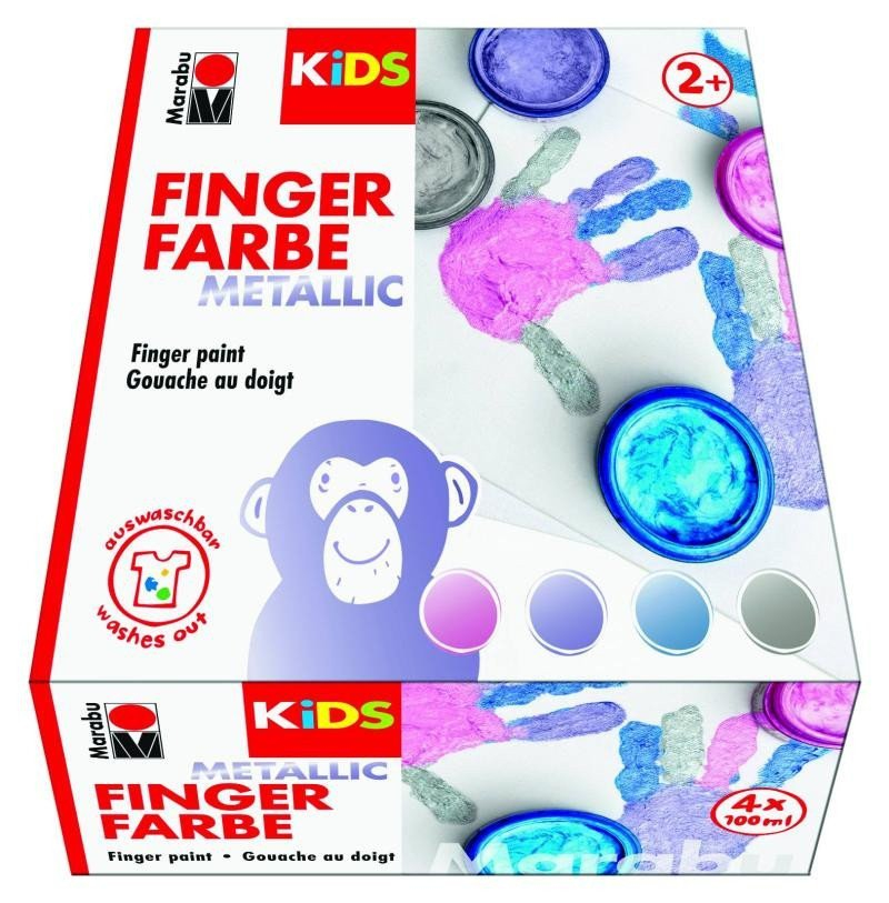 Marabu prstové barvy metalické 4x100ml sada. S touto sadou 4 barev na prsty Marabu KiDS začnou první obrázky těch nejmenších jiskřit a třpytit se! Třpytivý kovový efekt rozzáří dětské oči. Vytváření prvních uměleckých děl s malíčky je s touto krémovou, snadno roztíratelnou vodou ředitelnou barvou snadné. Je zvláště vhodný pro malování v předškolním zařízení, ve škole, na terapii i doma. Marabu KiDS Finger Paint lze nanášet prsty, rukama, houbičkou, špachtlí nebo štětcem na papír, lepenku, dřevo, sklo (okna) a film. Všechny barvy lze vzájemně míchat, nekapají, mají velmi dobré krytí a rychle zasychají. A když se malí umělci zapatlají, barva Marabu Finger Paint se snadno setře ze všech hladkých povrchů; stopy barvy na tkaninách by měly být před praním namočeny ve studené vodě. Barva je vhodná pro děti starší 2 let. Marabu KIDS Finger Paint splňuje požadavky směrnice o hračkách. To znamená, že se při jeho přípravě používají pouze speciální konzervační látky a pigmenty a přidává se hořká látka, která chrání před nežádoucí spotřebou. Obsah: 4 x Fingerpaint 100 ml (Metallic-Rose 733, Metallic-Violet 750, Metallic-Blue 752, Metallic-Silver 782)