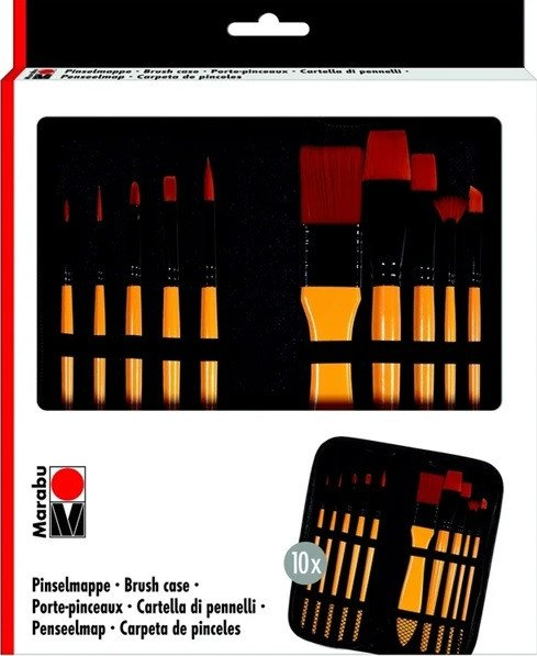 Univerzální pouzdro+10ks štětců. Různé tvary a velikosti štětců vhodné pro různé techniky. Pouzdro je vhodné ke skladování a ochraně suchých a čistých štětců.