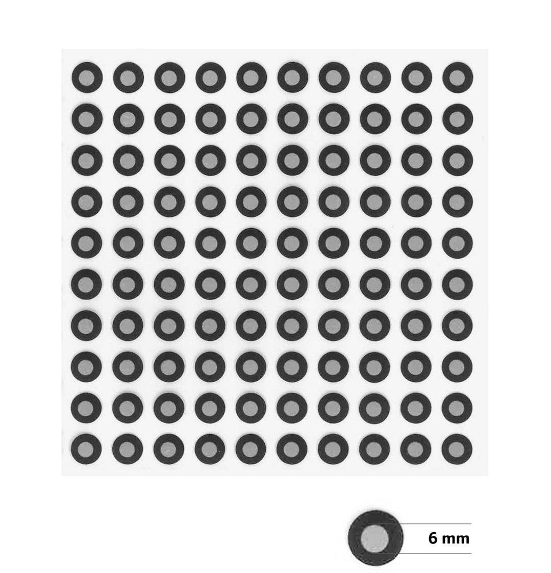 Předměty s pravidelnou strukturou, nebo lesklým povrchem, jako jsou kovové díly, například automobilové díly, se skenují velmi obtížně. Tyto značkovací terčíky poskytují skeneru "opěrný bod" pro efektivní zpracování tvarů a obrysů, což zajišťuje lepší zarovnání skenovaných dat a méně chyb ve výsledné 3D síti. Určeno pro skenování středně velkých a velkých objektů Zvyšuje přesnost a stabilitu skenování Kompatibilní se všemi 3D skenery, bez ohledu na výrobce nebo technologii Vysoce kontrastní povrch s reflexním středem Snadné odlepení a nalepení (ale doporučujeme použít pinzetu)