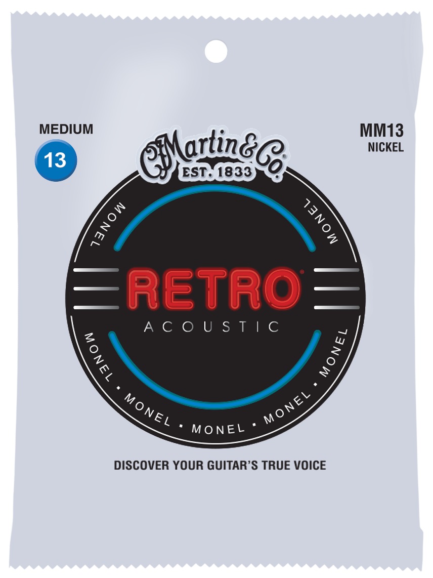 Kovové struny pro akustickou kytaru Společnost Martin přichází s vintage strunami Retro, které dokáží autenticky vyzdvihnout zvukový charakter kytarového dřeva bez zbytečných příkras. Díky tomu může jejich zvuk připomínat vintage nástroje z počátku dvacátého století. Unikátní konstrukce ze směsi niklu a mědi (známé také jako monel) vdechne vaší kytaře nový život a podpoří její přirozenost. Monel je navíc přirozeně odolný proti korozi, takže si struny zachovají jasný a konzi