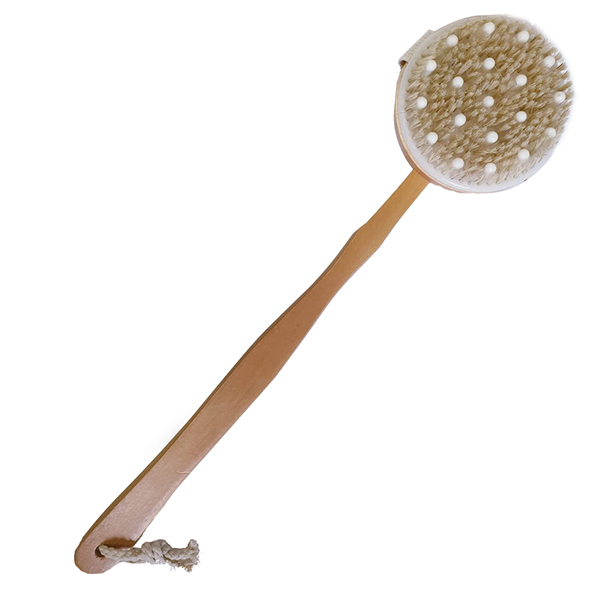 Kombinovaný kartáč s dlouhou rukojetí o délce 29 cm. Ideální na mytí a masáž celého těla po relaxaci v sauně nebo při saunování. Díky dlouhé rukojeti je vhodný k mytí zadních partií těla. Štětiny jsou přírodní, jemné a šetrné k pokožce.