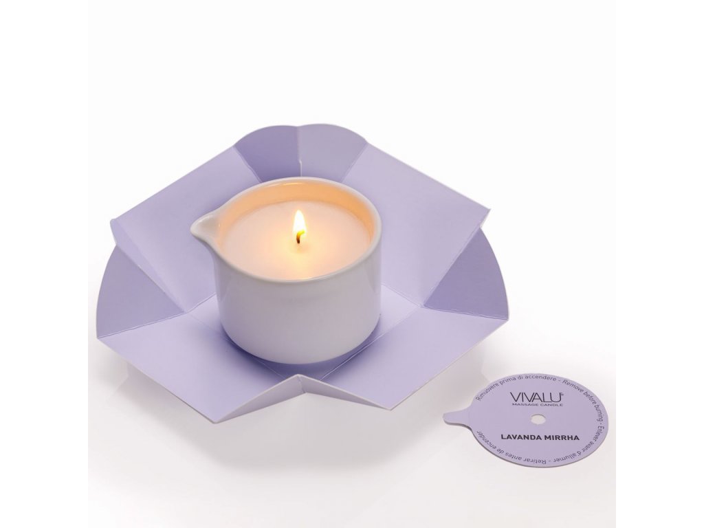 Masážní svíčka levandule a myrha 100 ml Výživná a hydratační masáž. Elastický účinek na pokožku. Intenzivní a fascinující vůně. Kosmetický výrobek. Dermatologicky testováno. Pár kapek na... • vyživu pokožku. • hluboce hydratuje. • aromaterapeutické působení. • vonný tělový balzám. • profesionální masáž. Se svíčkou můžete udělat 2-3 masáže celého těla.Základem pouzdra se stává pohodlná odkapávací miska.Ekologické balení s certifikací FSC. Návod na použití: Svíčku zapalte a nechejte hořet přibližně 10 minut.Vonné a masážní oleje i esence se rozpustí a svíčka je připravena k použití.Nalijte masážní olej na masírované místo popř. do dlaní a můžete začítprovádět relaxační masáž. Kosmetická a masážní svíčka VIVALU se využívá v masáži pokožky jako zvlhčující balzám, obsahující aktivní složky různýchreceptur. Zanechá pokožku na dlouhou dobu jemnou a vláčnou. Abyste si atmosféru našich svíček vychutnávali co nejdéle, je nutné po zapálení svíčku nechat hořet alespoň do té doby, než vosk (masážní emulze) roztaje po celé ploše. Svíčku můžete sfouknout až poté. Pokud svíčku sfouknete dříve, bude postupně hořet pouze kolem knotu a časem dohoří aniž by okolní vosk roztál. Více masážních svíček a informací najdete na e-shopu la-griseo.cz